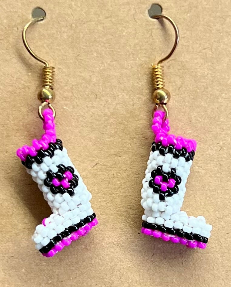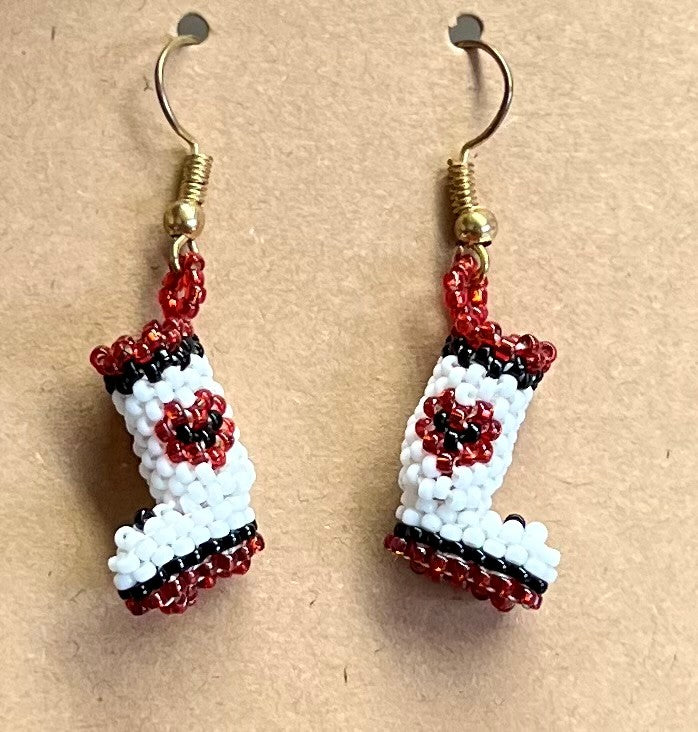 Red Mukluk earrings beaded by Alaska Native artist April Snyder. Measures approximately 0.75" top to bottom.