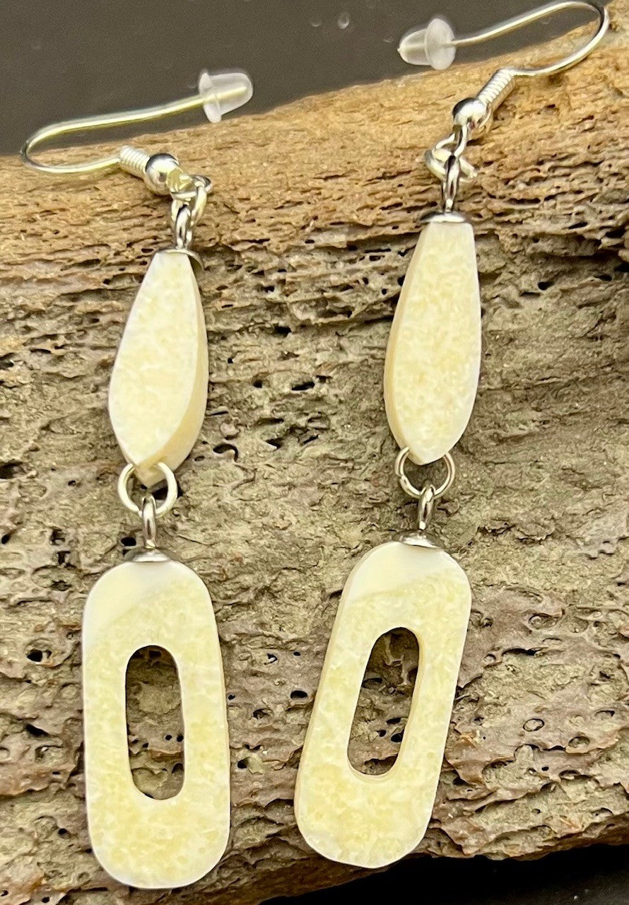 These earrings are carved from walrus ivory. Made by an Alaska Native artist Charles , Alaska. Each earring measures approximately .1" long.