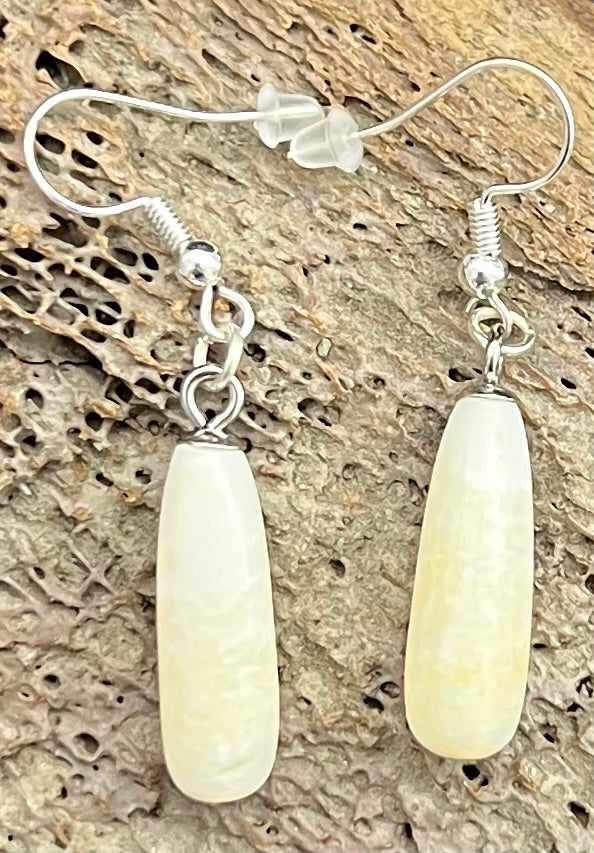 Earrings crafted from walrus ivory . Made by Alaska native artist Charles Allen. Each earring measures approximately 0.75".-1''long.