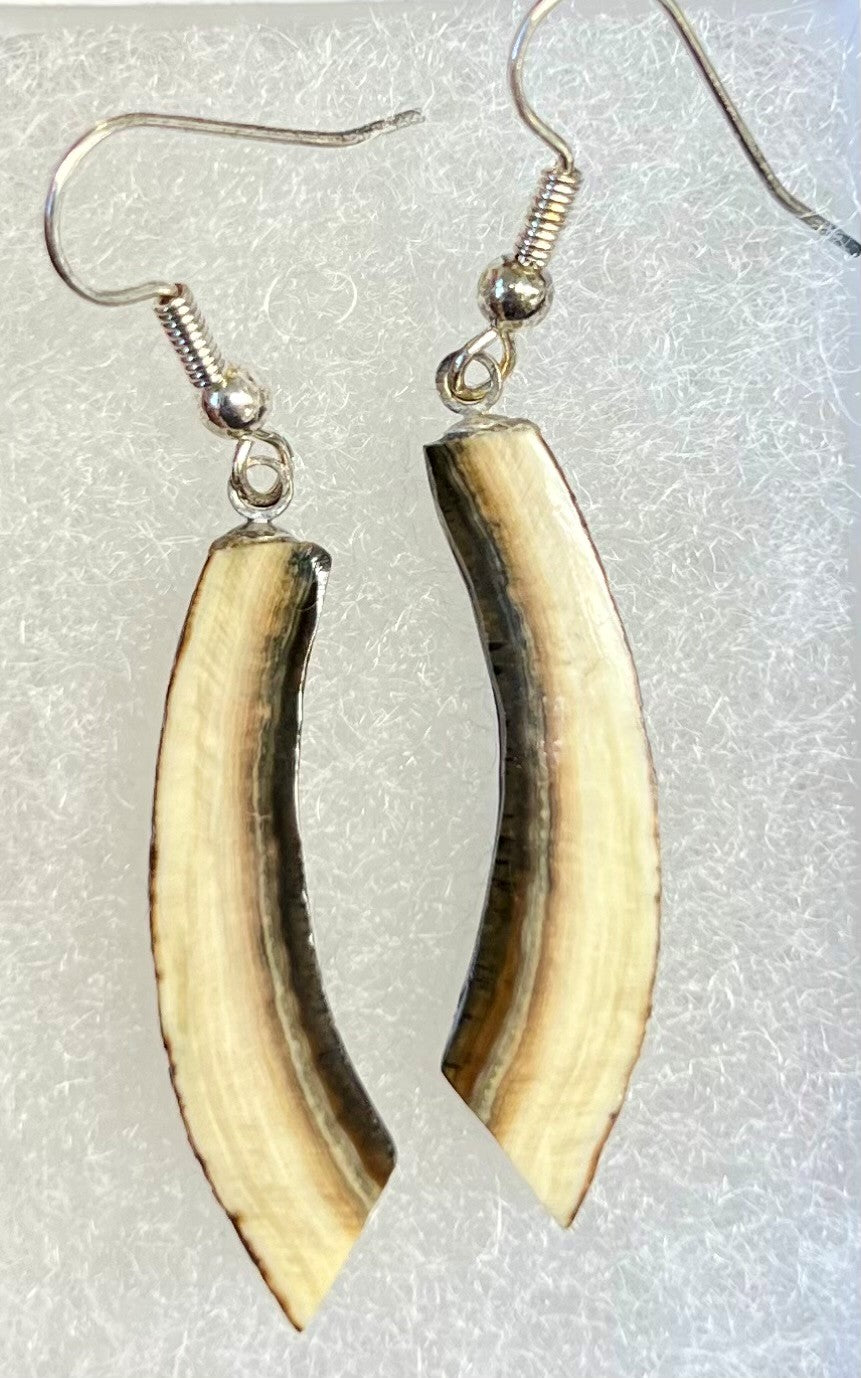 Earrings carved from mammoth ivory. by Alaska native artist from Shishmaref ,Alaska. 1.5'' long.